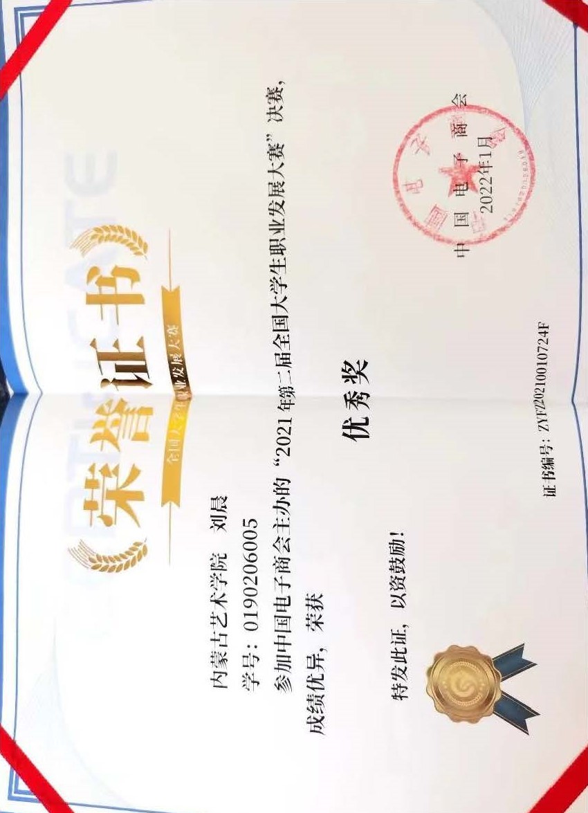 刘晨——2021年第二届全国大学生职业发展大赛“优秀奖”