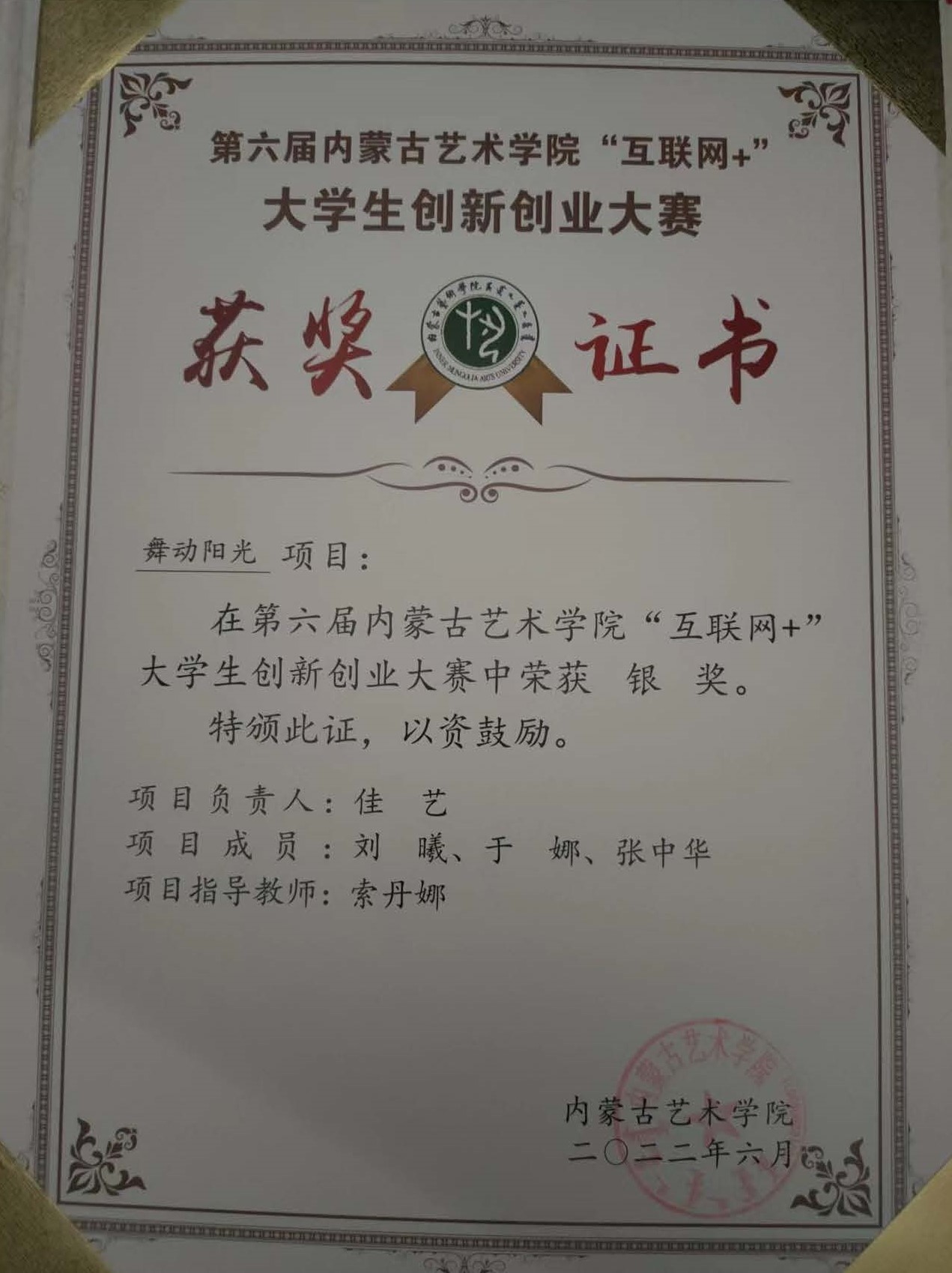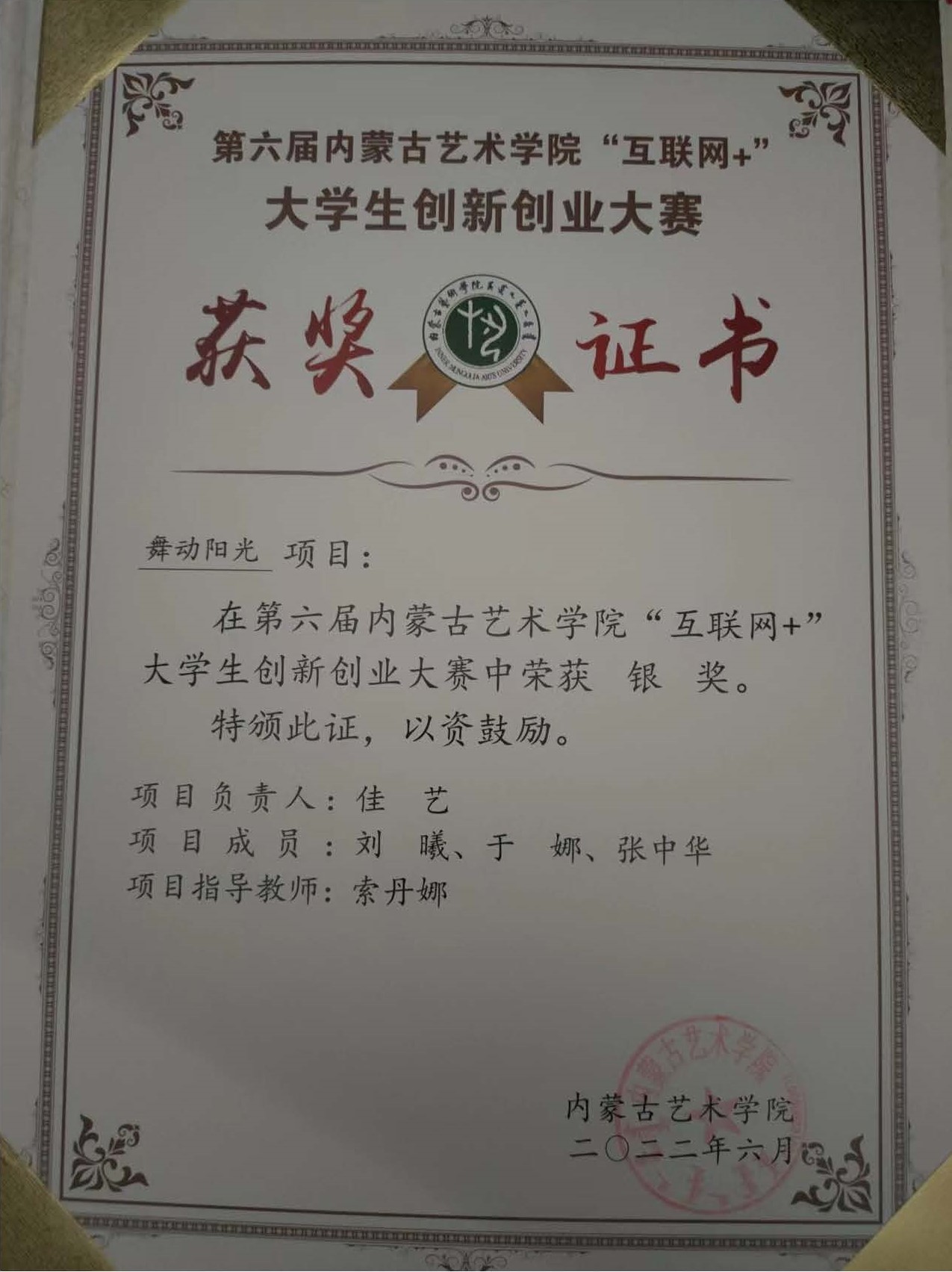 《舞动阳光》——互联网+大学生创新创业大赛”银奖“