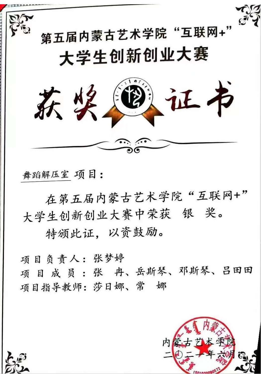 《舞蹈解压室》——“互联网+大学生创新创业大赛“银奖”