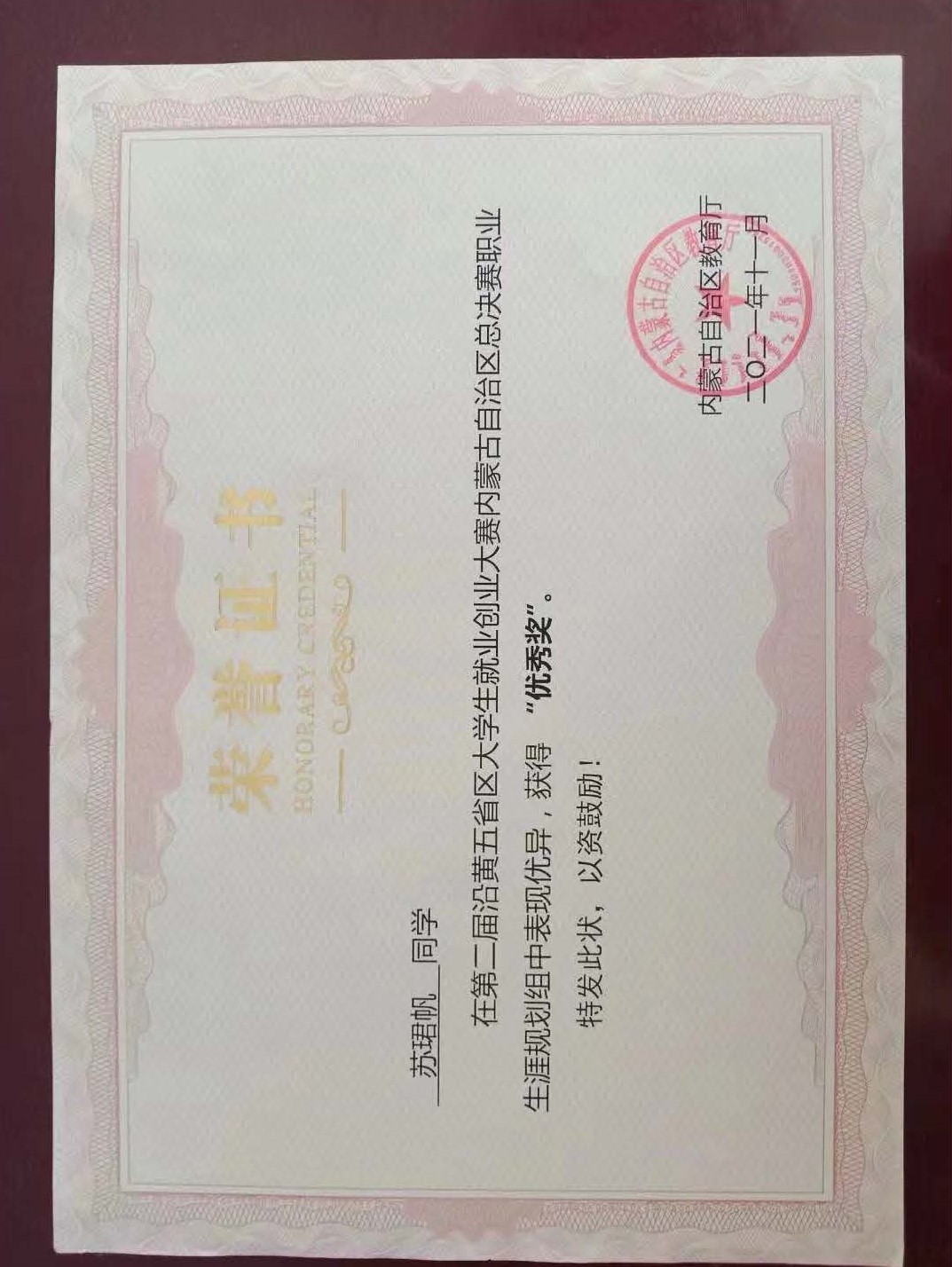 苏珺帆——第二届沿黄五省区大学生就业创业大赛内蒙古...