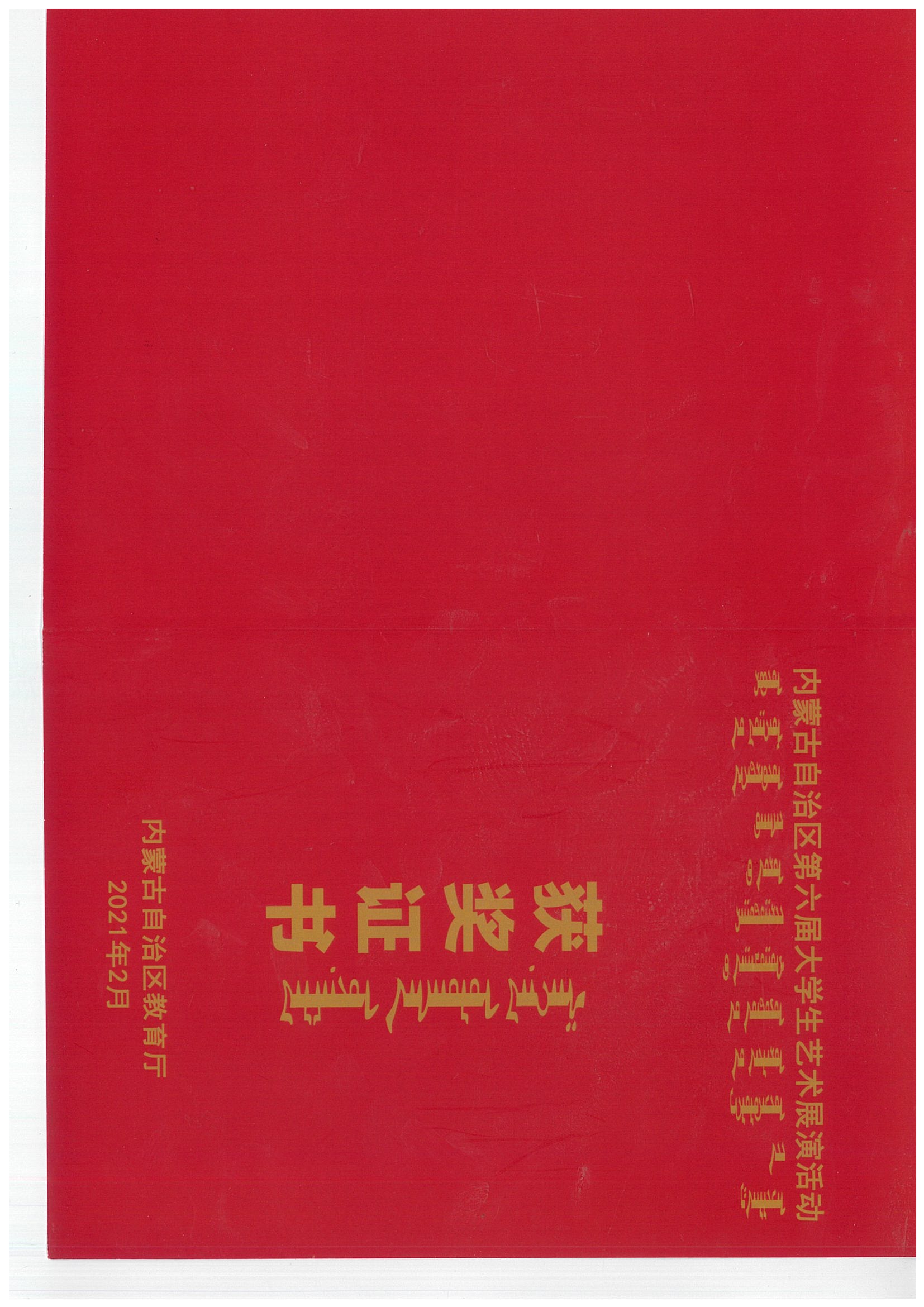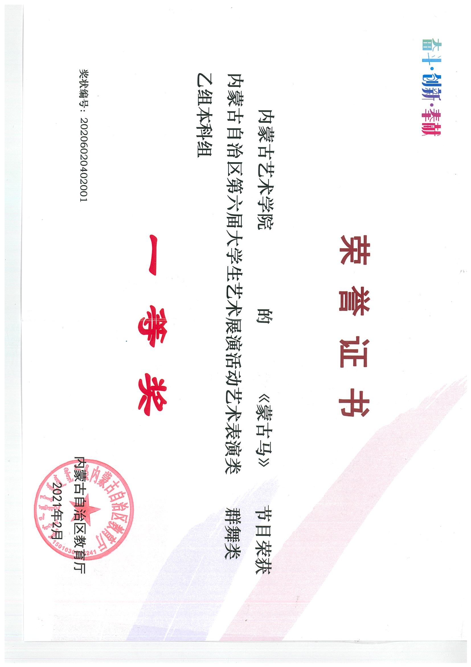 《蒙古马》—内蒙古自治区教育厅全区第六届大学生艺术展演“优秀指导教师奖”