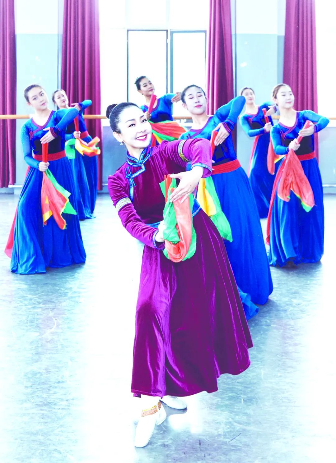面对中国民族民间舞长期依赖芭蕾、古典舞等外来训练体系,导致学生体态、技术与蒙古舞表演需求脱节的严峻现实,时任中国舞蹈家协会副主席、内蒙古艺术学院副院长赵林平,知名舞蹈家斯琴塔日哈共同担纲编写的《蒙古族舞蹈精品课程》教材打破了传统与现代的割裂现状,构建起新的科学训练体系。这一课程被教育部评定为国家级一流课、国家级精品课、国家级精品资源共享课,不仅拓宽了蒙古族舞蹈文化传播渠道,更实现了数据共享的积极传播影响力。乌琳是这一课程的主讲老师,从教室到舞台,她把蒙古舞演绎得淋漓尽致。