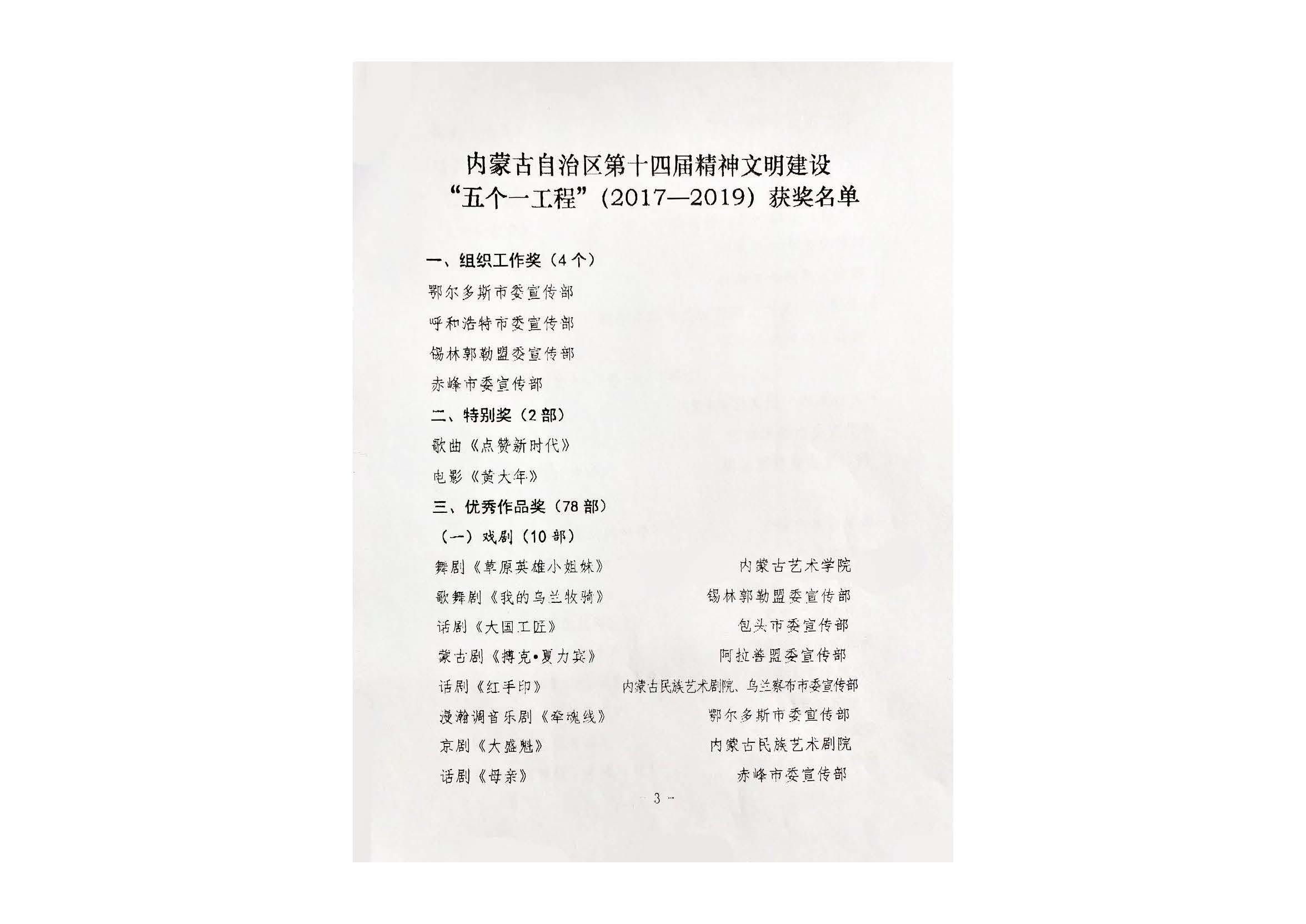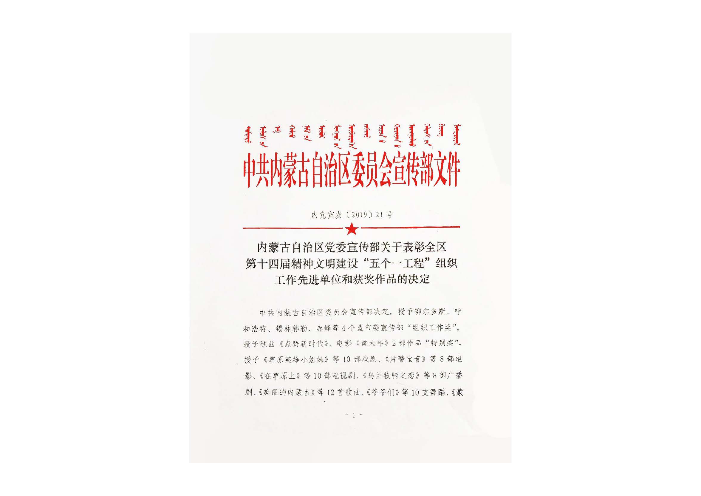 舞剧《草原英雄小姐妹》—全区第十四届精神文明建设五个一工程“优秀作品奖”