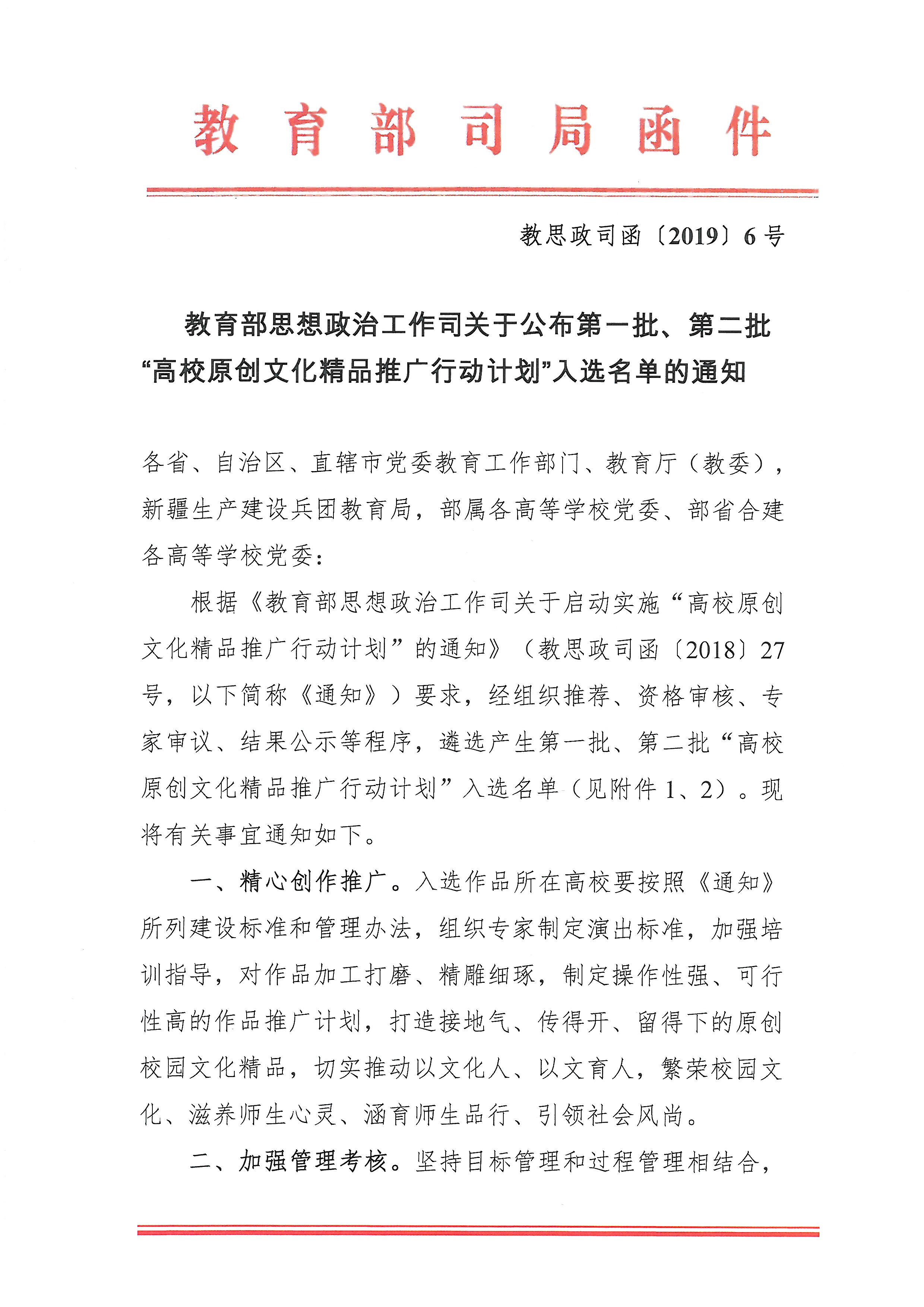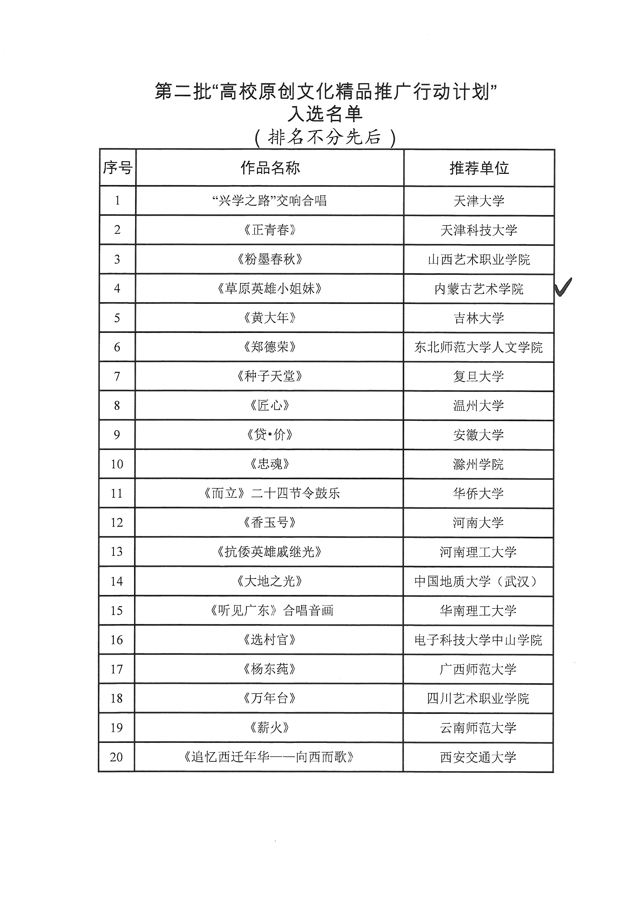 舞剧《草原英雄小姐妹》—教育部思想政治工作司关于公布第一批、第二批“高校原创文化精品推广行动计划”入选名单的通知