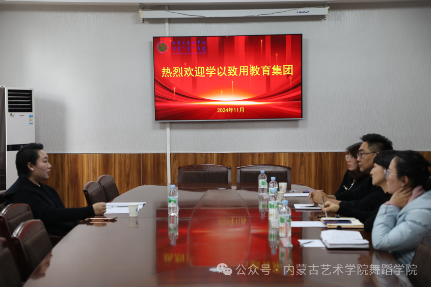 11月28日,舞蹈学院与内蒙古学以致用教育集团开展教育部供需对接就业育人项目座谈交流会,公司总经理白丽娜、舞蹈学院党总支书记杨杰、副院长李欣、办公室主任解敏以及团总支(学工办)负责人刘薇薇参与了座谈交流。